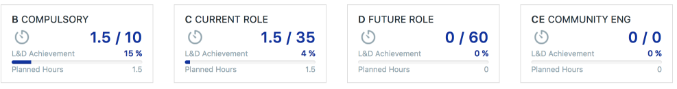 - Your progress against your L&D achievement (this is simply the percentage of total completed hours over the minimum target);